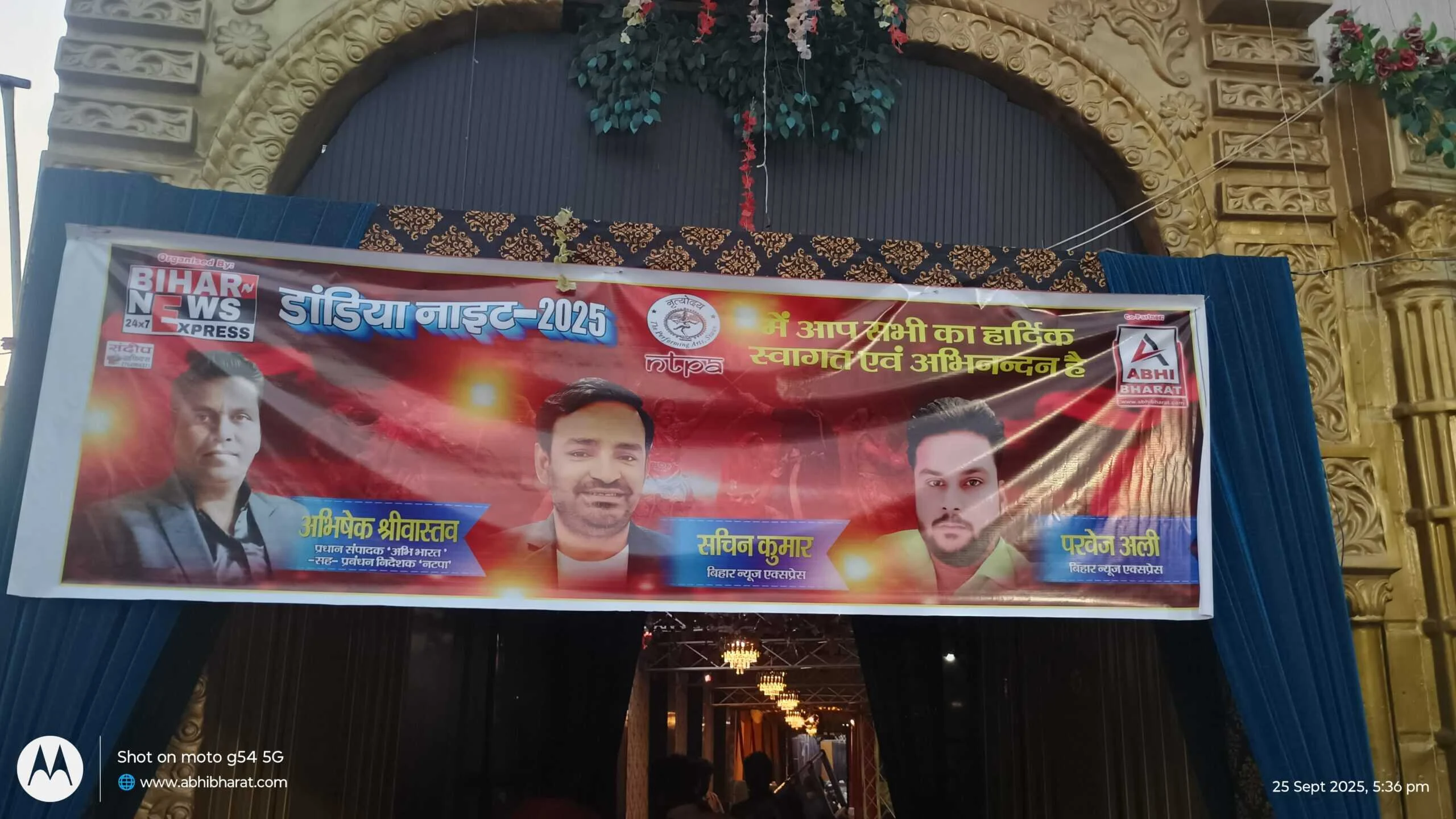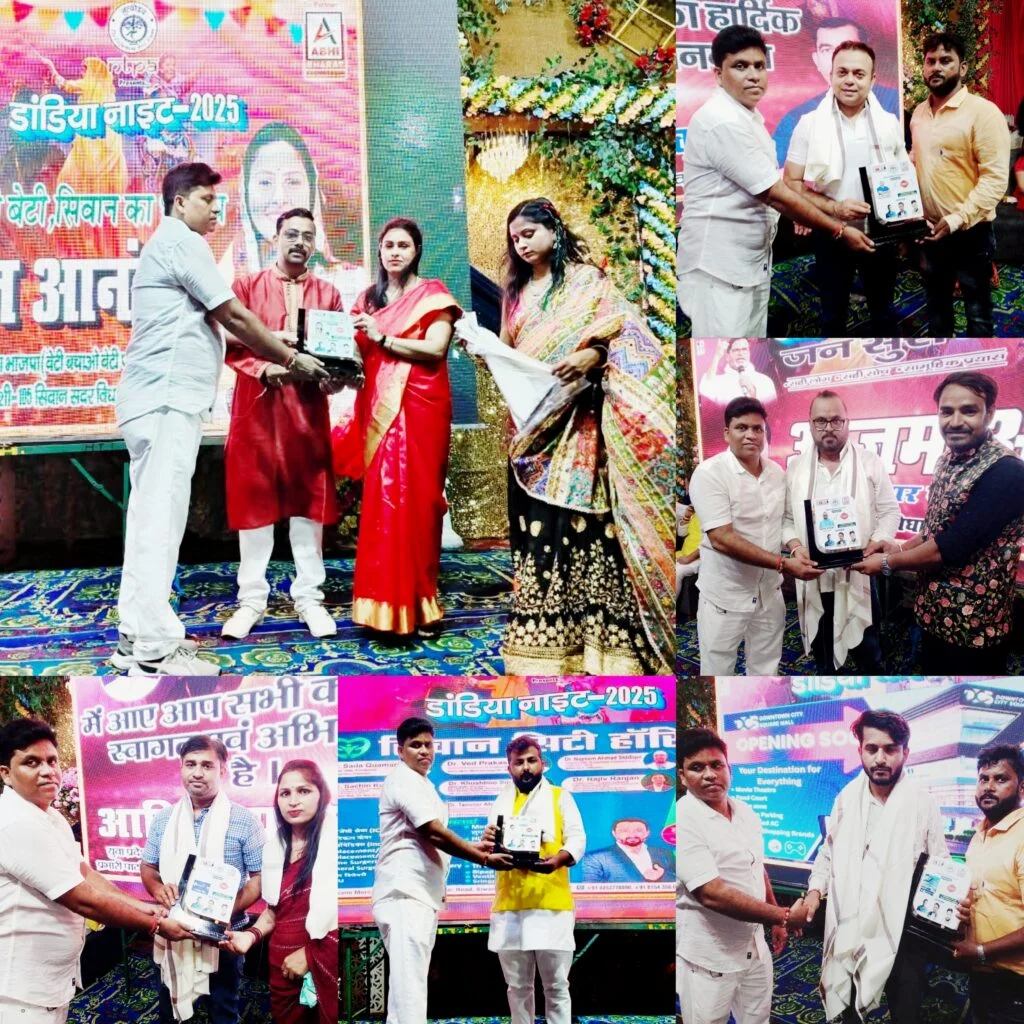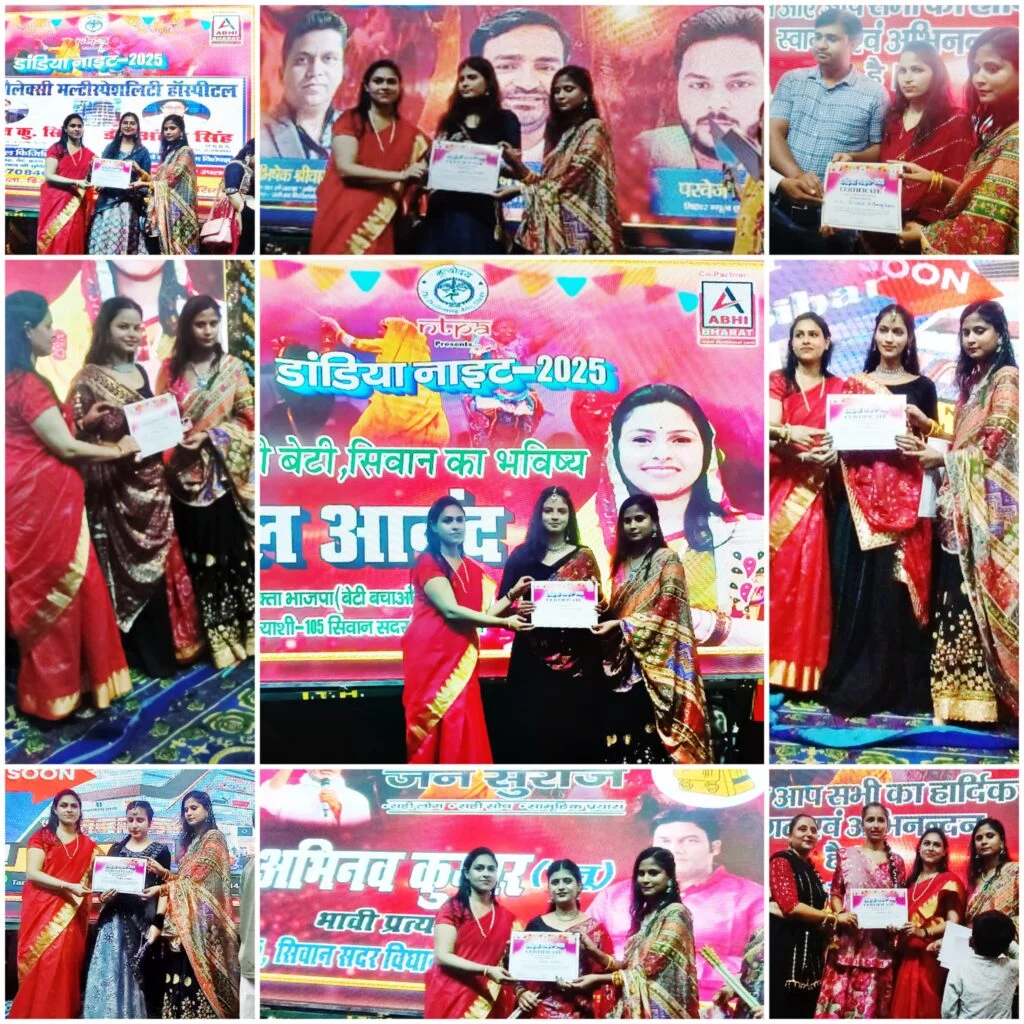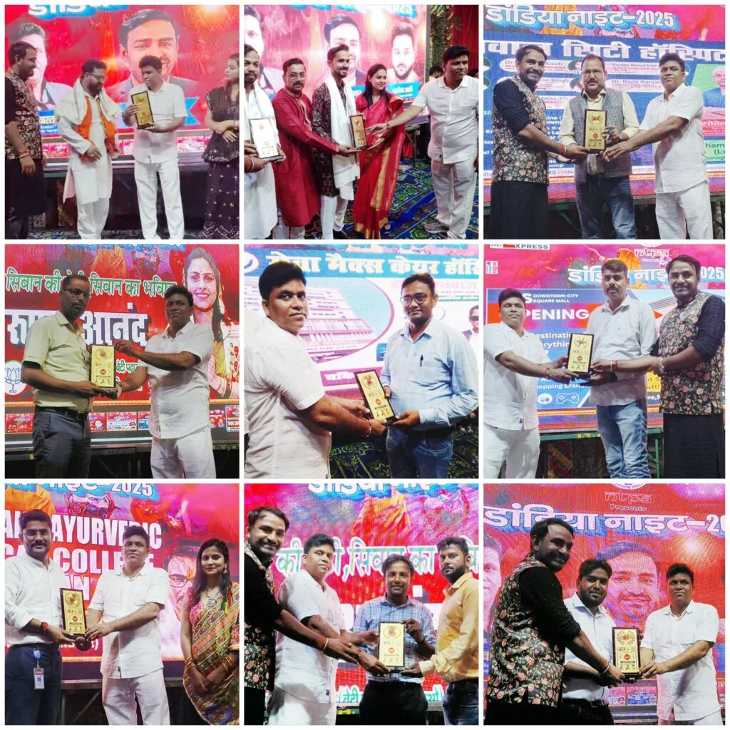 बता दें कि अभी भारत के इस डांडिया नाइट कार्यक्रम का शहर के जाने माने चिकित्सक, उद्यमी और समाजसेवी प्रायोजक रहें. जिनमें भाजपा नेत्री रूपल आनंद, गैलेक्सी मल्टीस्पेशलिटी हॉस्पिटल के संस्थापक डॉ रोहित कुमार सिंह, सेवा मैक्स केयर हॉस्पिटल के संस्थापक डॉ शाहनवाज आलम, सीवान सिटी हॉस्पिटल के डॉ सोहेल अब्बास, स्टार प्लस हॉस्पिटल के डॉ मधुरेश कुमार, सूफिया मेमोरियल हॉस्पिटल के डॉ मो मुंतजिर, दयानंद आयुर्वेदिक मेडिकल कॉलेज के प्राचार्य डॉ सुधांशु शेखर त्रिपाठी, भाजपा के सीवान जिला उपाध्यक्ष मुकेश सिंह कुशवाहा उर्फ बंटी, भाजपा नेता डॉ सैयद माज अर्फी, सीवान सेंट्रल को ऑपरेटिव बैंक के अध्यक्ष और पूर्व विधान पार्षद मनोज कुमार सिंह, लोजपा आर के युवा प्रदेश उपाध्यक्ष आदित्य पांडेय, जन सुराज नेता और सारण स्नातक विधान परिषद के पूर्व प्रत्याशी अभिनव कुमार रानू, नगर पार्षद आज़म अली, गिफिसेट अकादमी के फाउंडर राजन कुमार, समाजसेवी विकास मिश्रा उर्फ गोलू बाबा, डाउन टाऊन सिटी मॉल, स्टूडियो 11 फैमिली सैलून, पायल ज्वेलर्स एवं आरएस जेम्स एंड ज्वेलर्स शामिल रहें. इन सभी प्रायोजकों को अभी भारत के प्रधान संपादक एवं नृत्योदय द परफॉर्मिंग आर्ट्स (नटपा) के प्रबंध निदेशक अभिषेक श्रीवास्तव और बिहार न्यूज एक्सप्रेस के सचिन राज एवं परवेज आलम द्वारा अंग वस्त्र और मोमेंटो देकर सम्मानित किया गया.