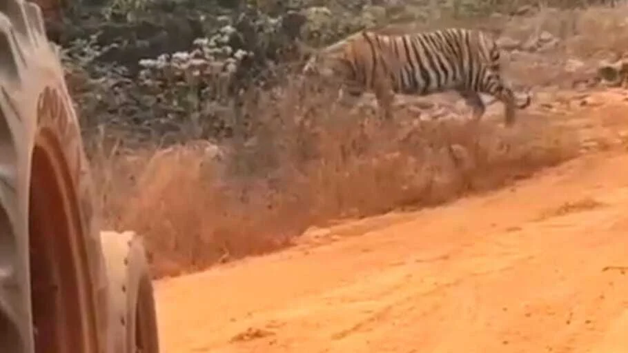 बताया जाता है कि कुछ लोग ट्रैक्टर पर बैठकर अधौरा पहाड़ी के जंगल में अपने खेत पर काम करने जा रहे थे कि तभी अचानक टाइगर सामने आ गया. जिसके बाद लोगों ने उसका फोन में वीडियो बना लिया. अब वह वीडियो तेजी से वायरल हो रहा है, हालांकि वन विभाग के अधिकारी ने इसकी पुष्टि नहीं की है. वहीं अधौरा पहाड़ी पर टाइगर देखने की सूचना जिला में आग के तरह फैल गई है और लोगों में चर्चा का विषय बन गया है.