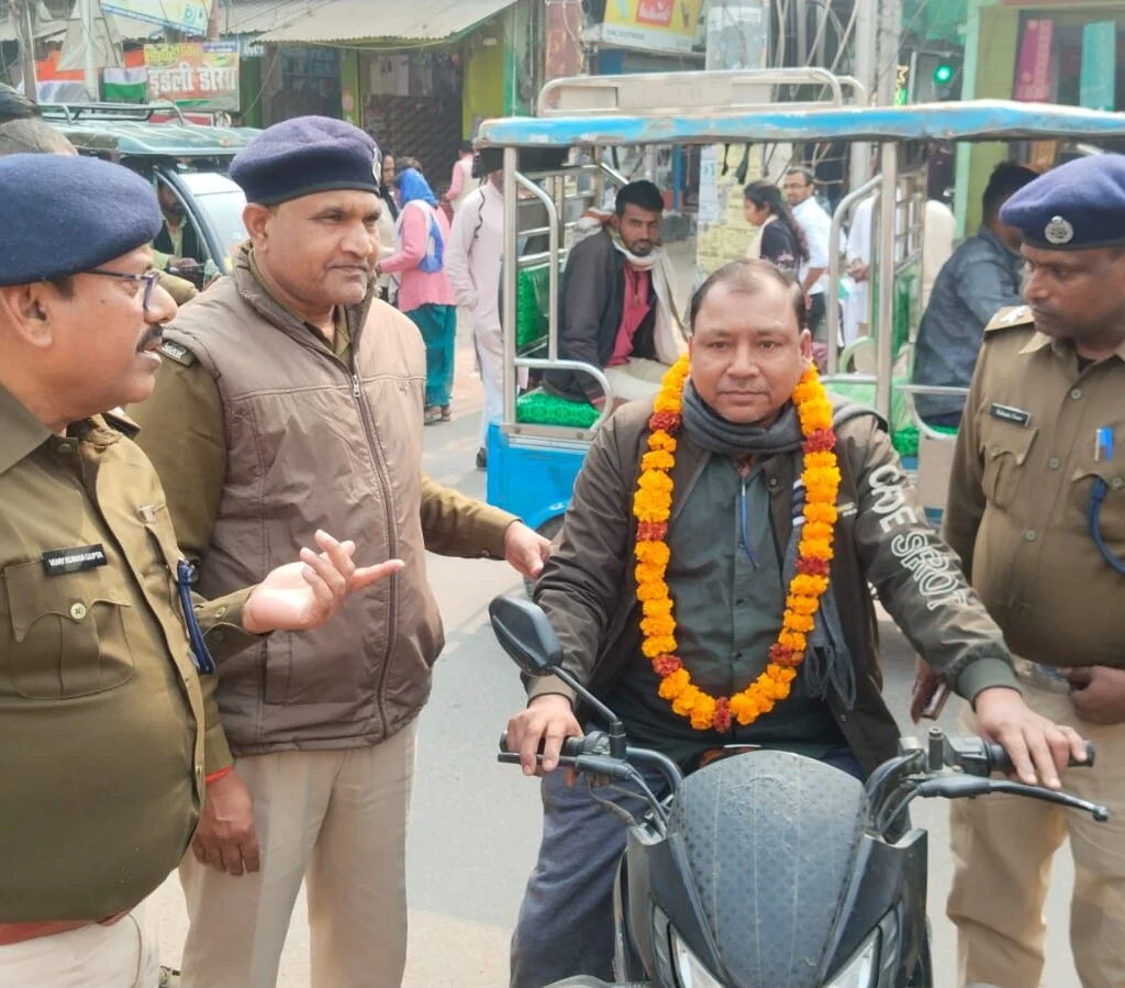 कैमूर : सड़क सुरक्षा सप्ताह के तहत परिवहन और ट्रैफिक विभाग ने चलाया रोको-टोको अभियान, बिना हेलमेट व सीटबेल्ट के चलने वालों को फूलमाला व गुलाब देकर किया गया जागरूक