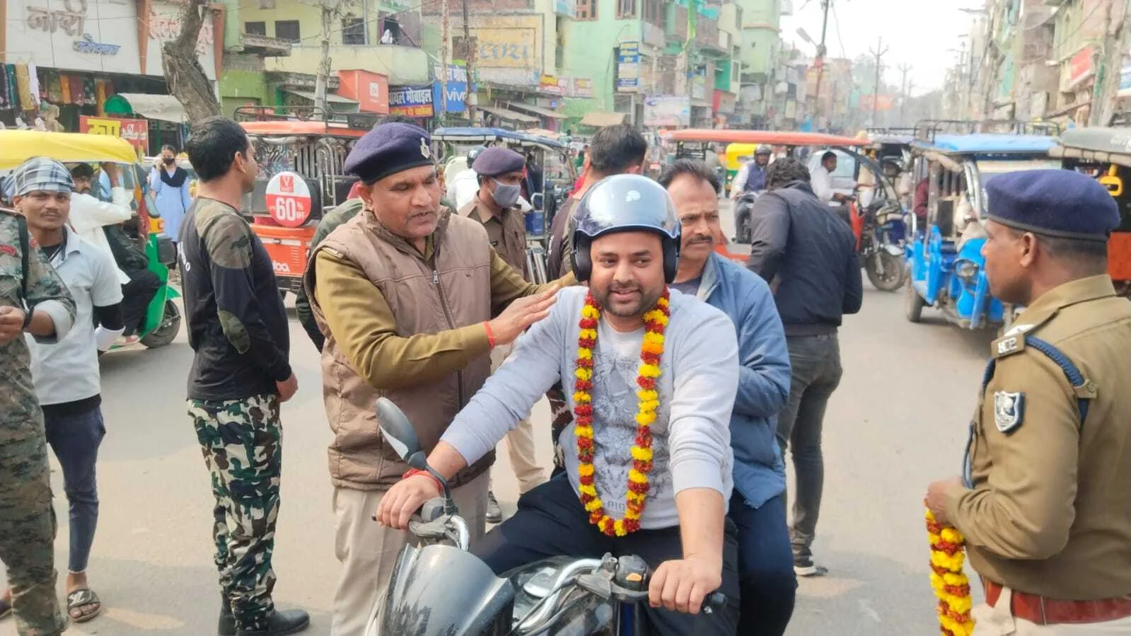 कैमूर/भभुआ || सड़क सुरक्षा सप्ताह के दौरान शनिवार को परिवहन विभाग और ट्रैफिक पुलिस ने रोको-टोको अभियान चलाते हुए दो पहिया और चार पहिया वाहन चालकों को जागरुक किया. इस मौके पर जो भी बाइक सवार बिना हेलमेट के रहें या फिर कोई भी चारपहिया वाहन चालक बगैर सीटबेल्ट के वाहन चलाते नजर आए तो उन्हें फूल माला पहनाकर व फूल देकर सम्मानित करते हुए उन्हें ट्रैफिक नियम का नियम का पालन करने के लिए जागरुक किया गया.