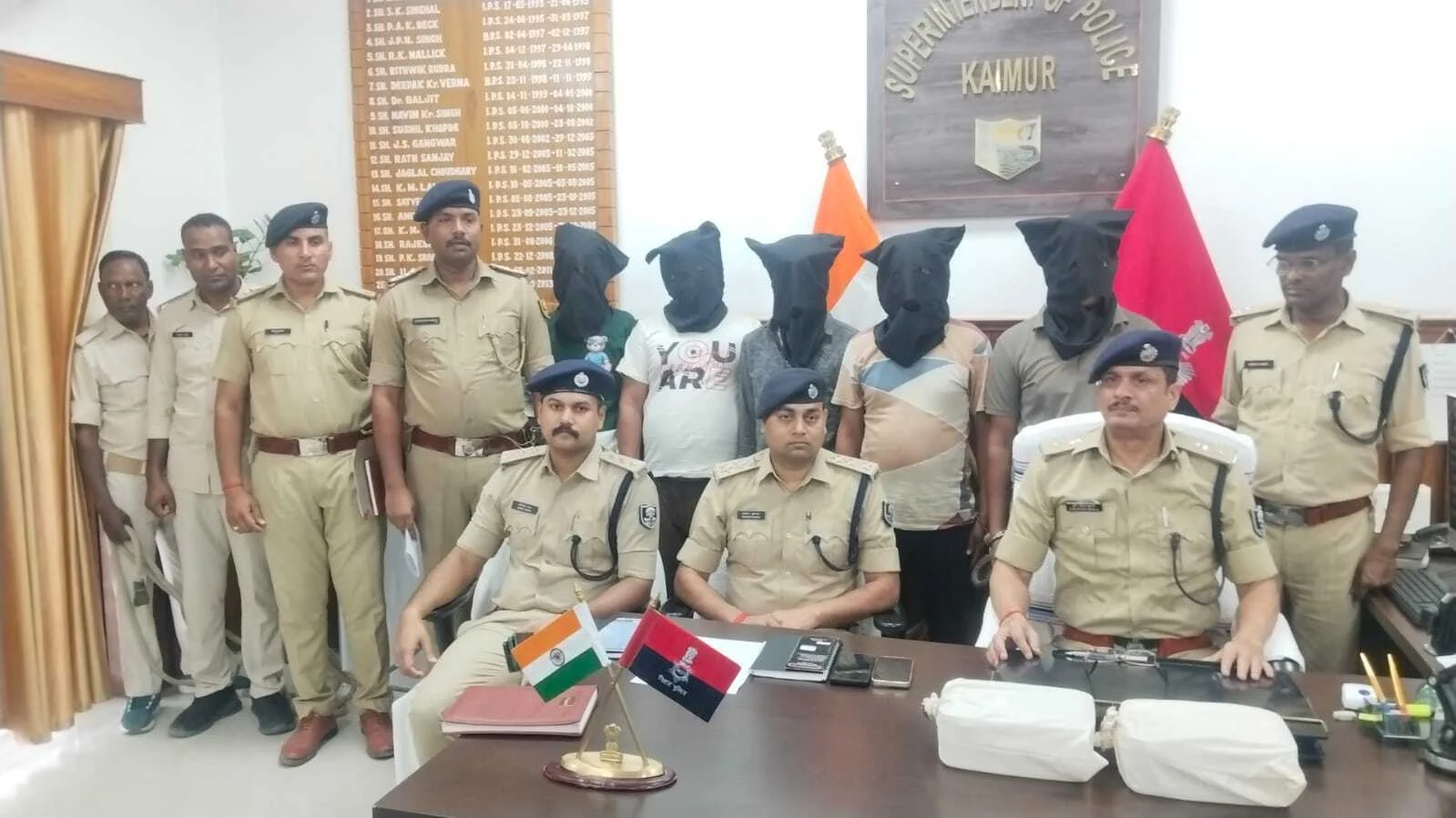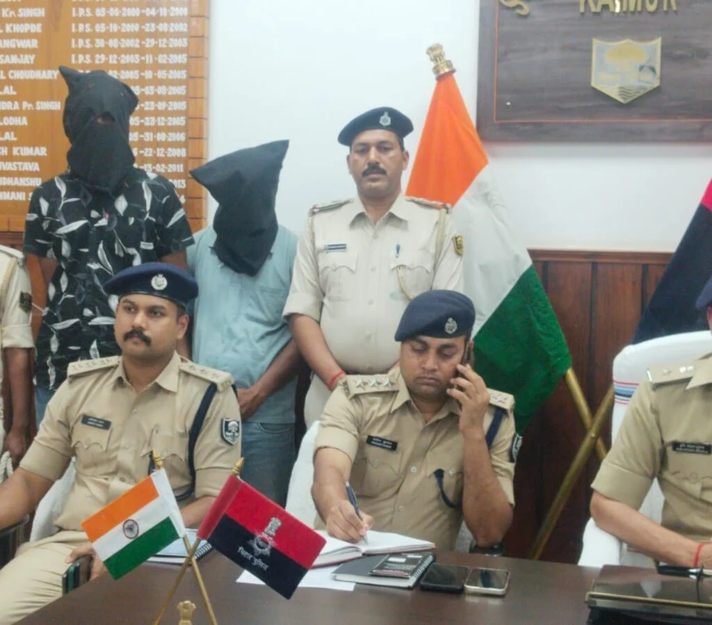कैमूर : पुलिस ने बड़ी घटना होने से पहले पांच अपराधियों को किया गिरफ्तार, तीन देसी कट्टा और एक गोली बरामद, पांच लाख के गांजा के साथ दो अन्य गिरफ्तार
