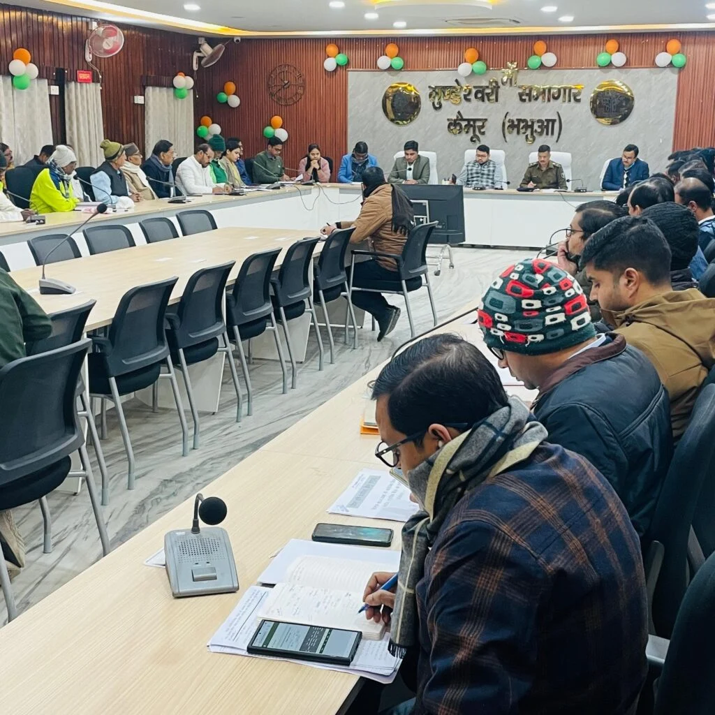 कैमूर/भभुआ || जिला पदाधिकारी नितिन नवीन की अध्यक्षता में आगामी 26 जनवरी 2026 को 77वें गणतंत्र दिवस समारोह की सुव्यवस्थित तैयारी को लेकर सोमवार को एक महत्वपूर्ण बैठक आयोजित की गई. बैठक में सभी विभागों के वरीय पदाधिकारी, पुलिस प्रशासन एवं अन्य सभी संबंधित विभाग के पदाधिकारियों द्वारा भाग लिया गया.