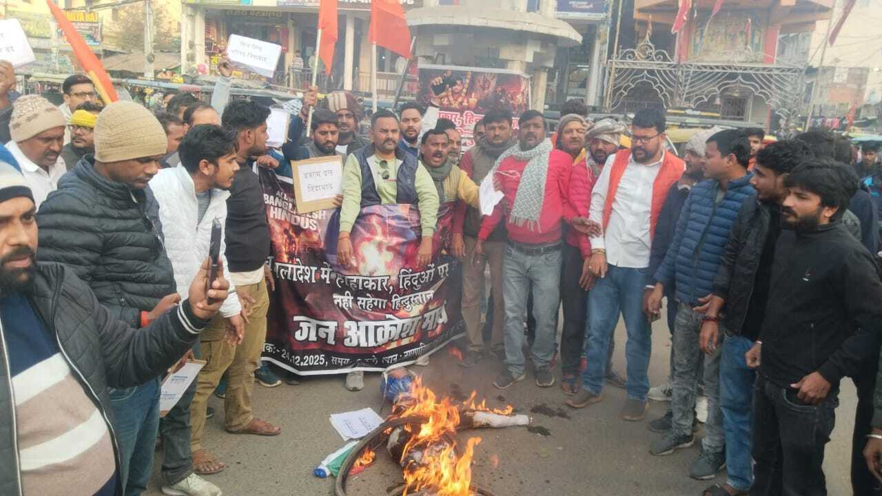 यह कार्यक्रम हिंदूवादी संगठन के सदस्य अमित कुमार उर्फ टिंकल के नेतृत्व में किया गया, जो यह विरोध मार्च भभुआ नगर परिषद मैदान से निकाला गया और पूरे शहर में घुमाया गया. वहीं एकता चौक पर बांग्लादेश के प्रधानमंत्री मोहम्मद यूनुस का पुतला दहन किया गया. इस दौरान विश्व हिंदू परिषद के उत्तम पटेल ने बताया कि बंगला देश में हिंदुओं पर हो रहे अत्याचार के विरोध में यह विरोध मार्च निकाला गया है, क्योंकि जिस तरह बंगलादेश में बांग्लादेश के प्रधानमंत्री मोहम्मद यूनुस के द्वारा हिंदुओं को आग लगाया जा रहा है, महिलाओं का शोषण की जा रहा मठ मंदिरों को तोड़ा जा रहा जिसे भारत के हिंदू कतई बर्दाश्त नहीं करेंगे. उन्होंने केंद्र सरकार और भारत के सभी पार्टीयो से मांग किया है कि, यह समय आपस में लड़ने का नहीं, बल्कि एक साथ हो कर बंगलादेश को सबक सिखाने का है, जिस तरह से पाकिस्तान को जवाब दिया गया, उसी तरह बंगलादेश को भी मुंहतोड़ जवाब दिया जाए, ताकि बंगलादेश में हो रहे हिंदूओ पर अत्याचार को रोका जा सके. उन्होंने कहा कि वे खासकर भाजपा सरकार के प्रधानमंत्री नरेंद्र मोदी से मांग करते हैं कि बांग्लादेश में हो रहे हिंदूओ पर अत्याचार रोका जय, नहीं तो इस सरकार की क्या जरूरत जिसके राज में हिंदुओं पर अत्याचार हो, अगर हमारी मांग पूरी नहीं हुई तो विश्व हिंदू परिषद पूरे भारत में जन आंदोलन करने के लिए बाध्य हो जाएगा और इस भाजपा सरकार को भी गिरा दिया जाएगा.