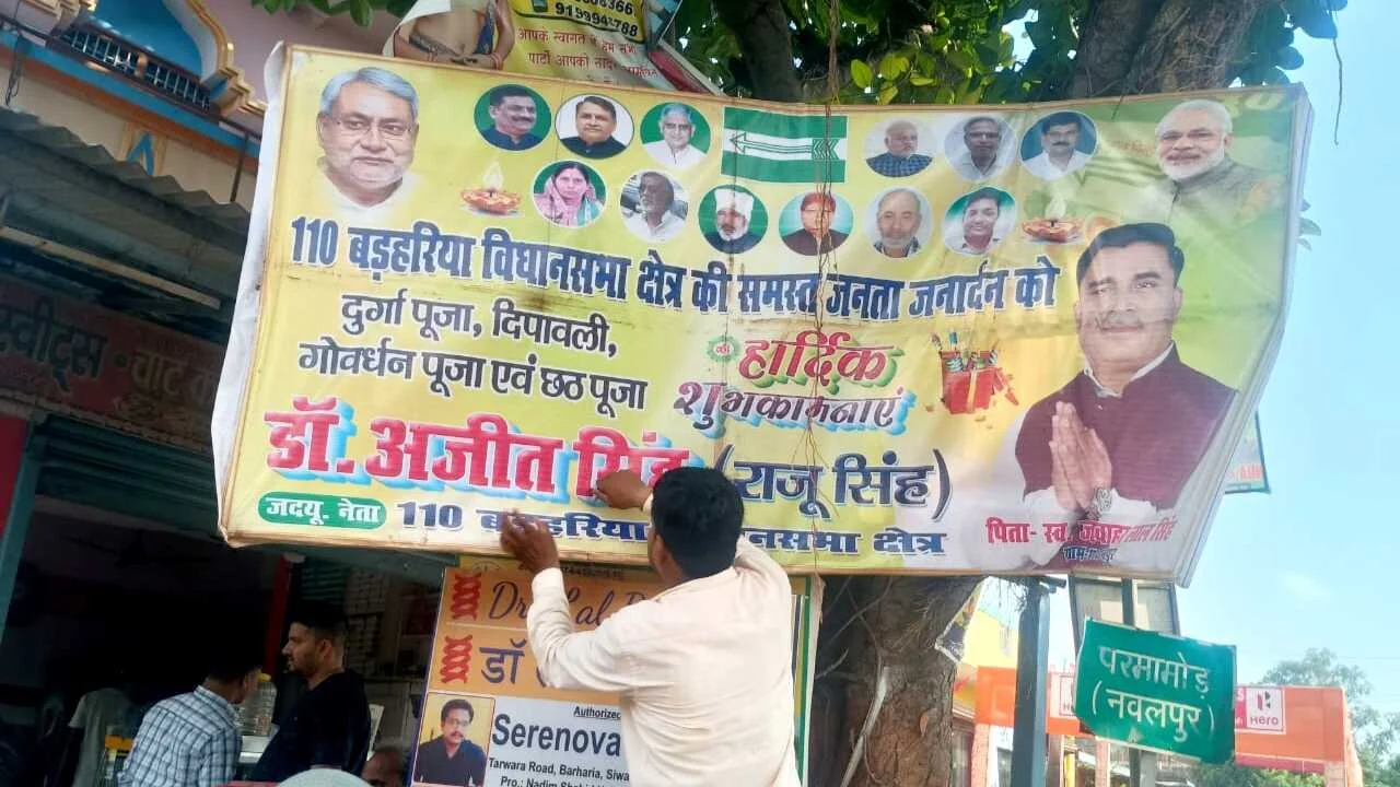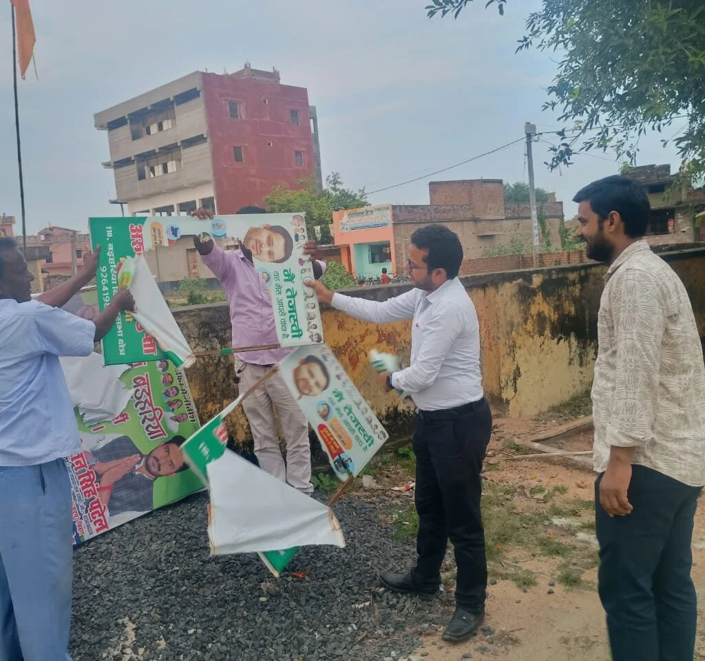 सीवान : बड़हरिया में अचार संहिता लागू होने के दूसरे दिन भी चला बैनर-पोस्टर हटाओ अभियान