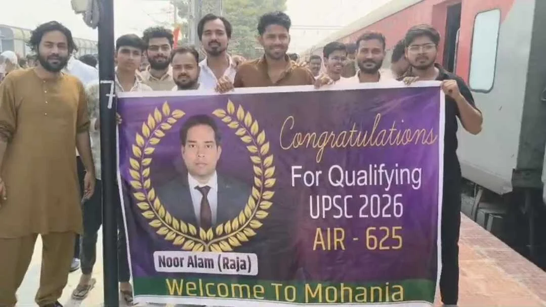 कैमूर : यूपीएससी में 625वां रैंक लाने वाले नूर आलम गांव पहुंचे, स्टेशन पर गाजे-बाजे के साथ हुआ भव्य स्वागत