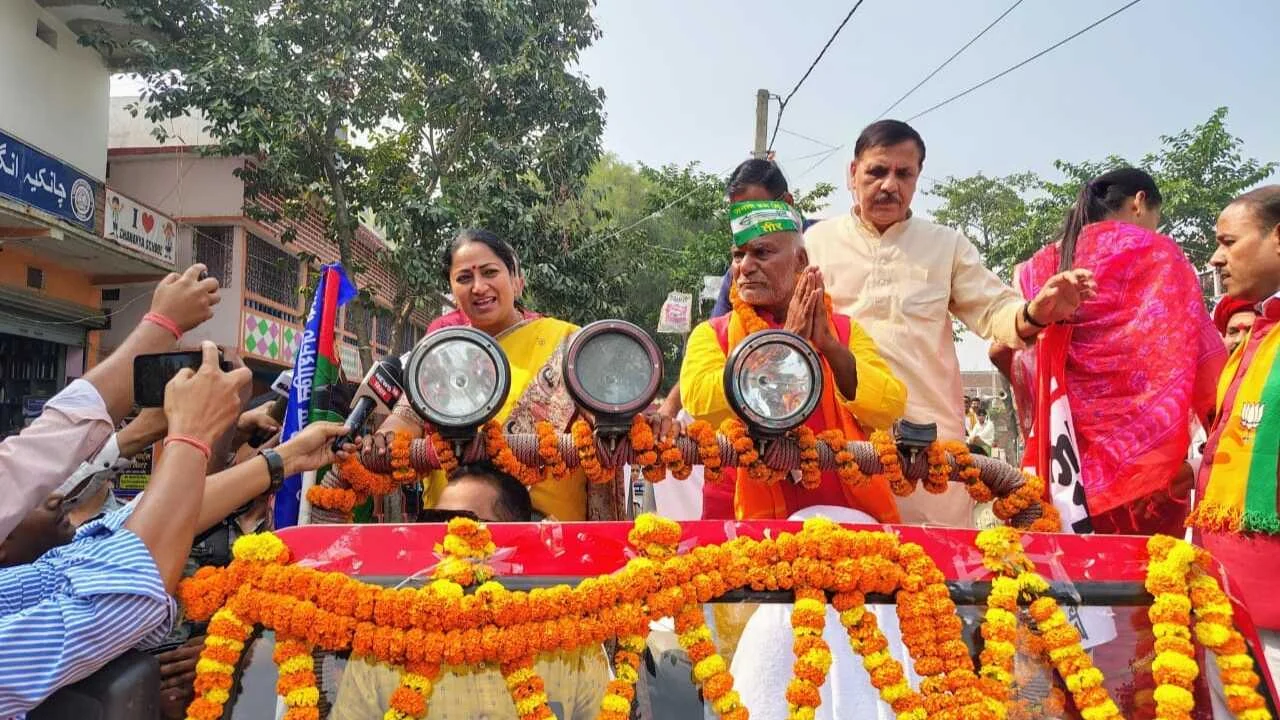 सीवान || जिले के बड़हरिया विधान सभा के एनडीए की ओर से जदयू उम्मीदवार इंद्रदेव सिंह पटेल के समर्थन में मंगलवार को दिल्ली की मुख्यमंत्री रेखा गुप्ता बड़हरिया पहुंची और रोड शो करते हुए क्षेत्र की जनता से इंद्रदेव सिंह पटेल के लिए वोट की अपील की.