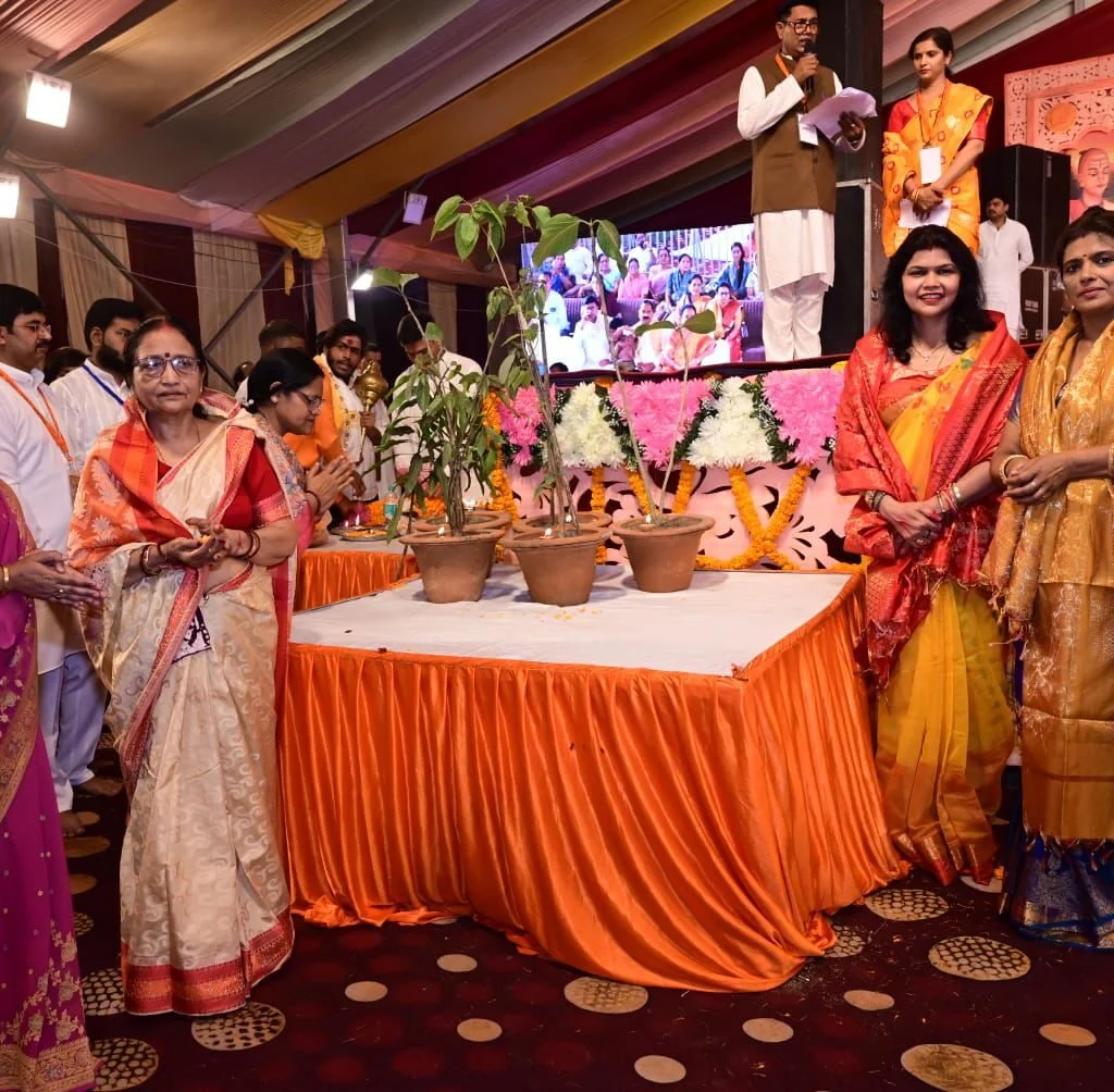 पांच महिलाओं को पंच पल्लव के पौधे वितरित कर उनकी सेवा का कराया गया संकल्प.